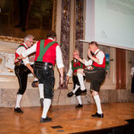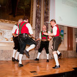 Zum Programm hat die Tanzgruppe Berghoamat einen besonderen Beitrag geleistet. Das Podium war sehr klein, daher konnten nur 4 Paare tanzen. Der Aufritt erfolgte im großen Festsaal vor ca. 500 Studenten und viel Prominenz.